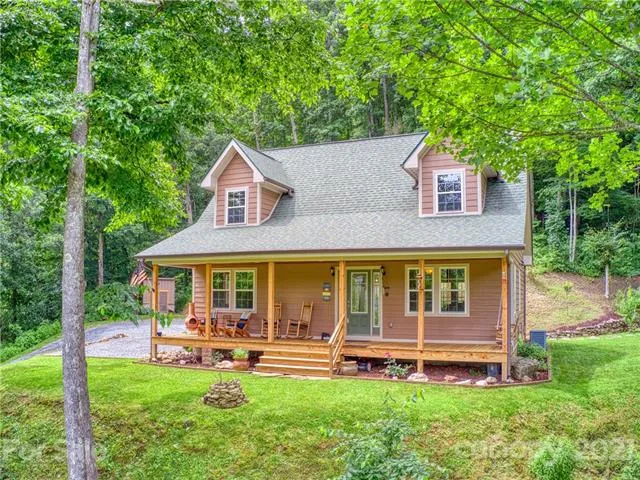 Drive through scenic and pastoral upper Crabtree to your sanctuary on a hill. Secluded and peaceful yet only 28 miles to Asheville, 10 miles to Waynesville & 16 miles to the heart of Maggie Valley. This exceptionally well built and meticulously maintained craftsman style home features hickory wood floors, solid wood moldings, energy efficient double pane windows throughout, ceiling fans in every room and a spacious open design on the main floor. Two generously sized bedrooms & Jacuzzi tub on the upper level. Birch cabinets & granite countertops are notable features of the kitchen. Plenty of usable outdoor living space on this 1.63 acre lot with year round long range mountain views, patio with hot tub, large front deck and fire pit to gather & enjoy sunsets over the mountains. Low maintenance. 35 yr architectural shingle roof, LP smart siding, Miratec trim, duration paint, and solid wood ...