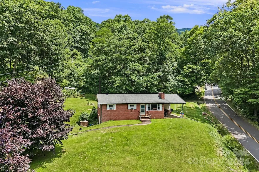 Property is not in flood plain or affected by recent floodings. Charming brick rancher, one-level living in the Cruso area. Features a walk-out basement w/garage door, making it ideal for your storage needs or hobbies. The home boasts hardwood floors throughout, with the exception of 2 cozy, carpeted bedrooms. Year-round paved access, ensuring no worries about getting in and out. The living room features a cozy woodstove that s perfect for those chilly evenings. Kitchen has been updated with new cabinets, counter, electric cooktop and oven. on 1 acre of unrestricted land, plenty of room for gardening, outdoor fun, or parking an RV. Soothing sounds of the creek across the street can be heard around the yard, views of Cold Mountain and you re approx .5 mi from the Pigeon River. Private location. Great starter home starting a new adventure or looking for a serene place to downsize, this home has tons of potential