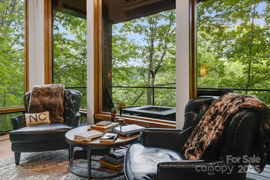 $52K PRICE IMPROVEMENT from original list price! STRs PERMITTED! STUNNING GLASS TREEHOUSE with river views on 3 acres! Live in the mist-covered canopy while bathed in stereophonic sound created by the Pigeon River on one side and a mapped stream on the other. Built in 2022 with floor-to-ceiling glass, your treehouse cabin is perched 100 feet above the river. Cozy-up in front of a fire table on your 120 sq. ft. deck cantilevered 30' above the lush ground cover. Cabin has engineered hardwood floors and ultra high-end finishes. Access your loft bedroom via mechanical stairs that retract and you'll find a king-sized bed, nightstands and 5 skylights for stargazing. Serpentine up 65 steps that blend into the flora and fauna as you ascend to your paradise in the clouds! Oversized septic system (3 bedroom), heated pump house, 3 gallon-per-minute well, 2 heat/ac units, all appliances convey, property is offered fully furnished. Experience the property via video link below. PROPERTY IS GATED.