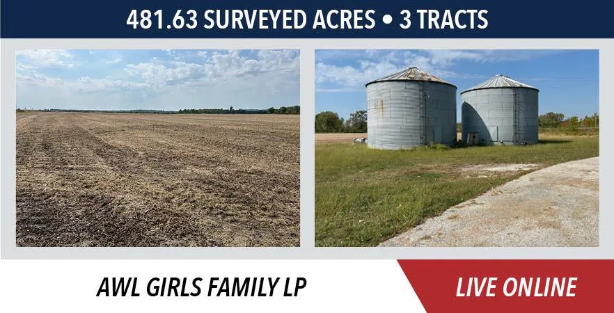 The farm will be sold on a price per acre basis, based on surveyed acres. All tracts will be offered through the marketing method of Buyers Choice, whereas the high bidder can elect any of the tracts for their high bid. If the high bidder does not elect all offered tracts, then the remaining tract(s) will continue to be offered Buyers Choice until all tracts have been elected. The tracts will NOT be offered in their entirety at the conclusion of the auction.