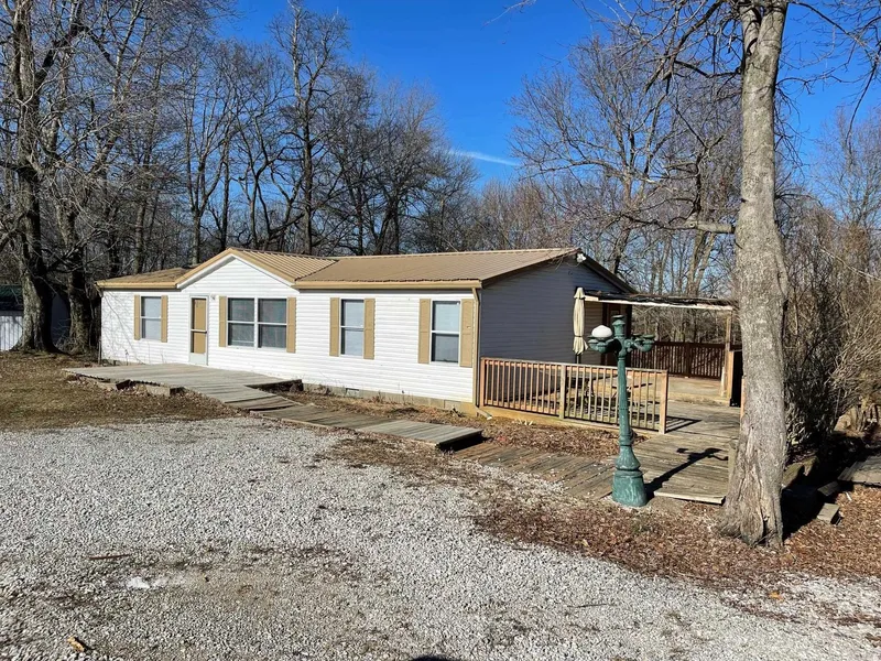 Welcome to the country! This property has .89 of an acre with a deep backyard and wooded backdrop. Enjoy the sunsets from your front porch. This home is a Stonecrest Fleetwood model and features 3 bedrooms, 2 bathrooms and vaulted ceilings throughout. Use the covered side patio and deck for cookout. Storage building is 8x42 with electric. New roof 1/2022. New flooring 2022.
