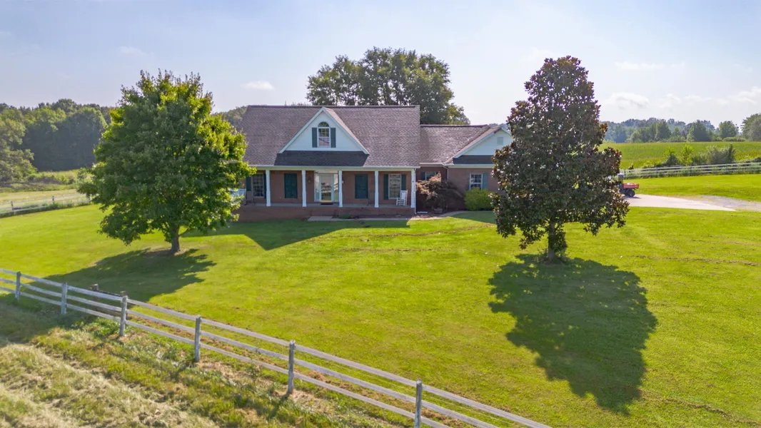 Nestled on a sprawling 14.21 acres, accessible via a secluded private lane, stands a bespoke brick ranch that has been lovingly crafted by its sole owner. The front porch offers awe-inspiring vistas that are bound to captivate your heart and entice you to claim this treasure as your own. Step inside to discover an intelligently designed layout, featuring three bedrooms and 2.5 baths, designed with privacy in mind. As you enter through the foyer, the great room beckons with crown molding, hardwood floors, built-ins, and a gas fireplace, creating a welcoming ambiance. The eat-in kitchen is a chef's delight, adorned with handcrafted Amish cabinets, granite countertops, and modern stainless-steel appliances, including a gas range. A breakfast bar and spacious breakfast nook complete the culinary experience. Adjacent to the kitchen is a formal dining room, perfect for hosting intimate gatheri...