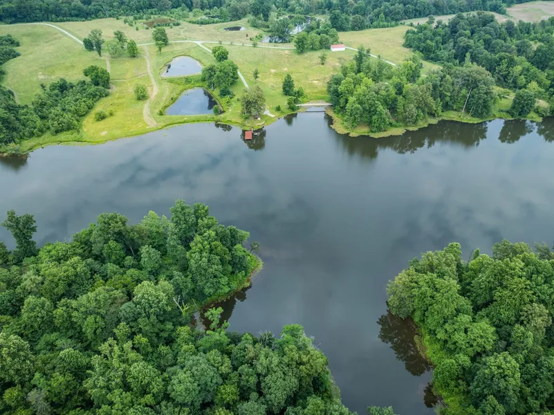 Scenic and secluded sportsman's paradise! Almost 200-acre farm with a 55-acre privately owned lake and 60 acres of woods. The lake is stocked with several kinds of fish and the property is abundant with wildlife. 8 ponds are also located on the farm as well as pasture land, and 2 cabins that front the lake. There is a dock at one of the cabins. Several shop and farm buildings on this property. Public water supplies the cabins. Woods were select-cut 14 years ago. This property is truly a one-of-a-kind property! Shown by appointment only.