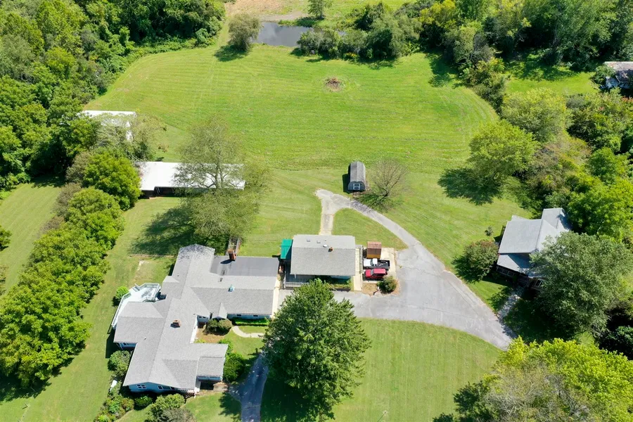 Investor alert! 3 homes, 12 acres, creek, pond, pasture, woods, barn, equipment shed/hay barn, convenient yet private. Rare 1 of a kind-endless possibilities for income producing potential: horse farm, motorcoach resort, VRBO, retreat, wedding venue, family compound. Main hm-2,994 sqft, 4BR/2BA, 3 fplcs, skylights, wood/tile floors, updtd kitchen and BA. Main hm den, ofc and br under 7 feet. 2nd home is 1,375 sqft and has living room with cathedral ceiling, rock fireplace, sunroom, 1 BR, ofc and lg laundry. 3rd hm is 711 sqft, 1BR/1BA, 1 car garage in bsmnt. No deed restrictions. All hms have their own septic and share 1 well. Septic systems to be inspected/verified by buyer/buyers agent. The Log sided home was once a mfg home, existing home was built around it. You would never know to look at it. Property adjoins 40 acres of DOT property. Insulated barn is perfect for RV storage, hobby ...