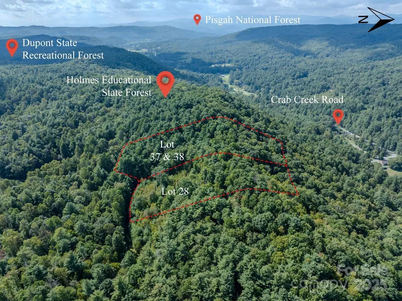 Now available: Lot 37/38 for sale off Old CCC Road, located in the peaceful community of Settlers Ridge. This secluded property sits along Settlers Ridge Road, a privately maintained roadway-partially paved and partially gravel. The lots feature gently sloping, easy-to-build homesites with stunning long-range mountain views to the north and beautiful short-range views of Stone Mountain to the south. The seller is currently in the process of combining Lots 37 and 38 into one lot. Only one primary residence will be permitted to be built on this tract. A survey will be conducted and available to the public by the end of October. One of the biggest highlights of this opportunity is the location. Old CCC Road is ideally situated about halfway between Hendersonville and Brevard, just 3.8 miles from the popular Jeter Mountain Farm (worth a quick Google if you're not familiar). Outdoor enthusiasts will love being approximately 150 feet from Holmes Educational State Forest, only 4 minutes from DuPont State Forest, and just 17 minutes from the entrance to Pisgah National Forest. Settlers Ridge is a quiet, private community where you'll enjoy complete seclusion-with no other homes visible from the property. The neighborhood has minimal restrictions and a very low HOA fee of just $100 per year. Utilities are within reach: a Duke Energy cabinet is already on-site, and AT&T wired internet is nearby. As with most properties in the area, a private well and septic system will be needed. Contact the listing agent today to schedule a showing or learn more about this exceptional mountain lot.