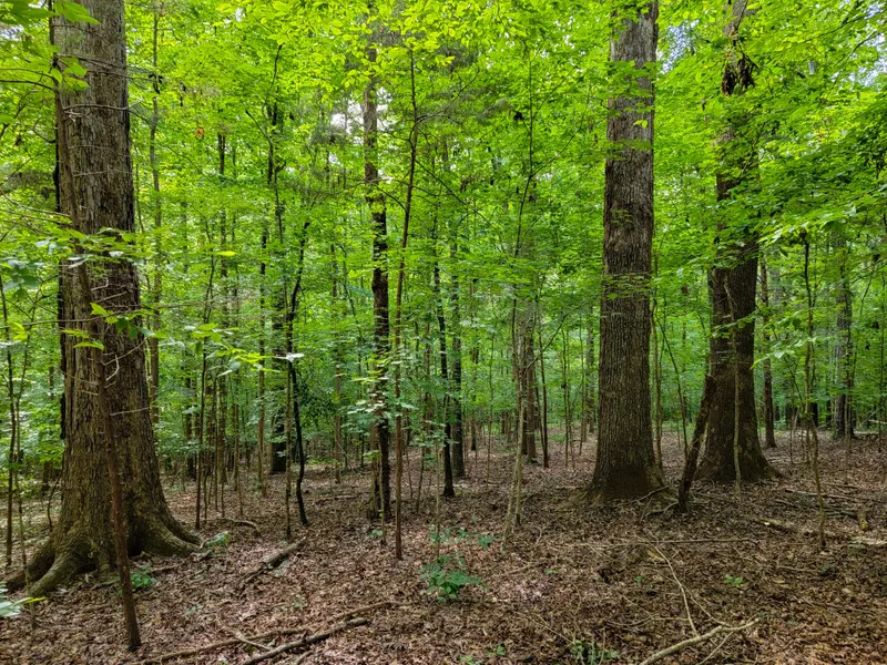 The hardwood forest is classified as a two-aged upland hardwood system with trees ranging from pulpwood-sized poletimber to large sawtimber. Primary commercial species include white oak, red oak, yellow-poplar, sweetgum, and hickory. The upland pines range from pulpwood to large-sized sawtimber.