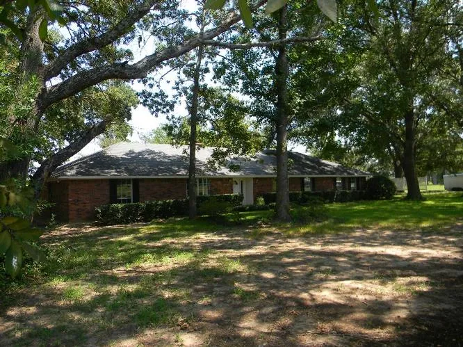 Traditional home under canopy of oaks with semi-private 18 acre lake in back yard. Open floor plan with spacious living area with brick floors and wood-burning fireplace, formal dining area, breakfast area, kitchen has breakfast bar, oven & range, and boathouse on lake. Adjoining home and additional acreage are also available.