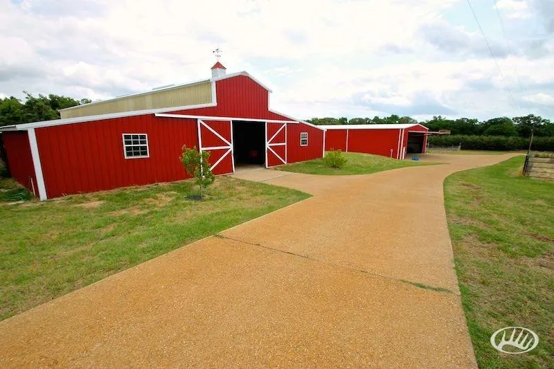 - Horse Barn: 4,224 square feet, 10 indoor/outdoor stalls with each stall having automatic water inside and outside. Barn has electric and water in place with two tack rooms, and bathroom.
