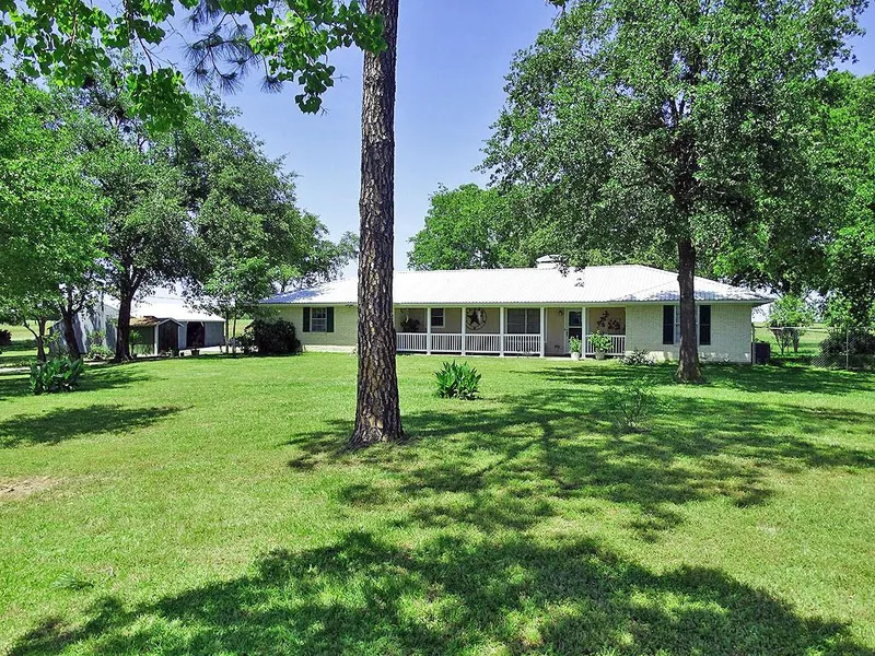 This mini ranch sits on 8 acres with a hilltop view and a winding asphalt driveway. A split bedroom design with a separate office in the master bedroom and ample storage with walk-in closets in every room. Outdoor amenities include a metal roof, detached 4 car garage/barn, Wilcox deep well, improved pasture with a pond and a shady backyard with large hardwoods.