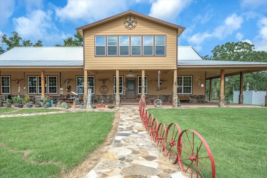 Exclusions: Branding iron light fixture, wagon wheel planters, yard art, white buffalo at entrance, red mini home, farm equipment.