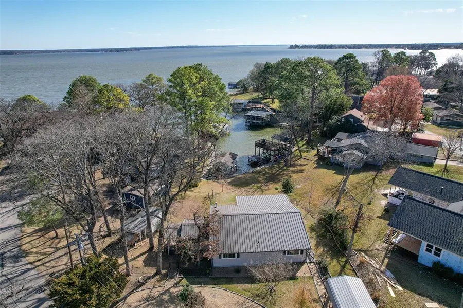 MUST SEE!! Charming, transitional Farmhouse with Shiplap walls. Waterfront with spectacular open water views. Private boat dock boat lift and electric jet ski lift. Completely remodeled, new apex plumbing, move in ready. Nestled amongst large mature trees, relax on the large covered patio with plenty of room for entertaining. Open concept living,dining,kitchen area with floor to ceiling double pane argon gas windows, 2 large BR 2 full baths, walk in shower & jetted tub second bath. Third bedroom currenly be used as office. Enjoy fall and winter time in front of the mid-century modern wood burning fire place. Private outdoor shower facing the lake with hot and cold water. Large storage shed workshop with attached additional covered parking for your golf cart or lake toys. Spacious circular drive and large carport for RV or boat storage. New metal roof, 3 years old on house and workshop. Large yard, fenced. Owner is Licsened Real Estate Agent. Only a 1 hour drive from downtown Dallas