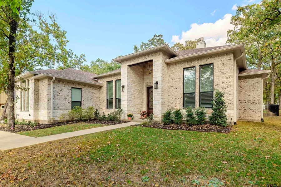 Enjoy resort style living every day in the prestigious Pinnacle Golf Course gated community on Cedar Creek Lake in Mabank. This exquisite 3-bedroom, 3-bath residence boasts an open-concept design, seamlessly blending a spacious living room with large windows offering breathtaking golf course and occasional wildlife views. Entering the home is a generous office with privacy French doors so you never need to leave. Across the entry with its wood look tiled floor and beadboard ceiling detail is the formal dining area. The windows across the front of the house are draped with plantation shutters. The focal point of the kitchen is a large quartz topped island adorned with pendant lighting and natural stained cabinets with ample bar seating. The kitchen includes a generous walk-in pantry dual zone wine cooler, GE French door refrigerator with Keurig K-cup brewing system and ice maker, GE Smart Convection Oven, pot filler and plenty of workspace and storage. Enjoy a movie in the bonus room complete with its own entertaining area including sink and a mini-fridge. The primary bedroom has a grand feel with its tray ceiling and large windows overlooking the golf course and greenbelt with its own private door to the patio. The ensuite is wrapped in floor to ceiling quartz for a spa-like feel. The other two bedrooms are split down a separate hall and share a bathroom but have individual dressing areas. The third full bath is conveniently located for guests down the hall. Set on a heavily treed lot on a greenbelt overlooking the 8th hole tee box, the exterior invites relaxation with a covered patio and an expanded open patio area, perfect for entertaining or simply enjoying the tranquil surroundings. The sale of a home in Pinnacle Club requires a .002 transfer fee to the buyer as a one time charge for the Social Membership that is provided with the purchase of this property.