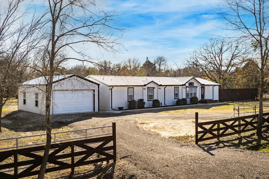 Stunning 4-bedroom 3-Bath manufactured home on 1.995 acres with new 20 x 30 foot detached garage. This expansive, well-maintained 2047 sq. ft. home sits on nearly 2 acres of unrestricted land within the city limits, offering both privacy and convenience to local shopping and various restaurants near by. The property is fully fenced with a circular driveway and has two electric gates. Inside, youll find a great floor plan, open and airy for all of the family to enjoy. The primary suite features a beautifully designed custom closet with sliding glass doors with lots of built in storage. The kitchen is a terrific highlight to this home, boasting a large hidden pantry and ample storage, along with modern appliances including a refrigerator, microwave, electric glass-top range, and a dishwasher. The utility room can also double as a mud room, features a small vanity with a sink set up between the washer and dryer hook ups to provide extra cleaning possibilities coming from outside. The back patio is perfect for outdoor entertaining, whether you are a grill master or mixing up fun for the kids in the back yard. Grab a hammock and nap underneath the huge trees that surround the property. Additional amenities include extra parking with an awning, providing plenty of space for guests or a RV storage. Bring your treehouse building skills to life of the kids or a greenhouse for the wife and still have room for a workshop or mancave. Just a few miles away from public boat ramp to enjoy summer activities. Whether you're looking for space to grow or just want a peaceful retreat, this property offers everything you need.