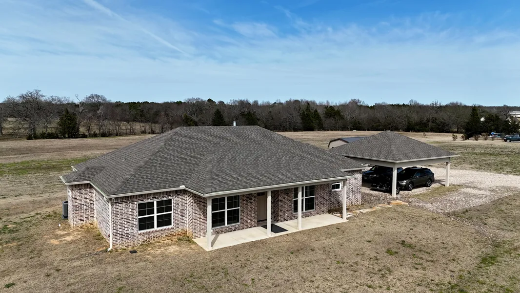 This less than 2 year old 3 bed, 2 bath home on 5.01 acres boasts 2,092 sf of living space and features an spacious open floorplan. The primary suite offers a large walk-in closet. The primary bath features a double vanity, free standing soaking tub, a separate shower and even a built in makeup counter. A separate den with a custom built bookcase can be used as a home office or a fourth bedroom. The main living area is enhanced by a wood-burning stove. Part of the main living space could easily be closed in by adding two walls to create a second home office, game room, or another bedroom! The kitchen is a chefs dream, complete with granite countertops, custom cabinetry, and a large pantry. Outside, you will find a 2 car detached carport and a convenient storage building. The land itself is surrounded by rolling hay meadows, offering breathtaking views and abundant wildlife. Located in the desirable Brownsboro ISD, with easy access to both Athens and Tyler.