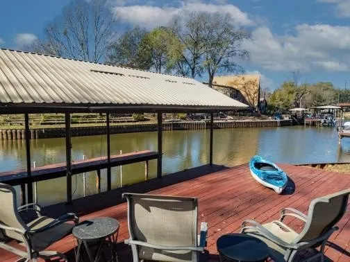Well, it's time to start living your best life... THE LAKE LIFE! This move in ready remodeled pier and beam lake house has been updated from the studs to the joists and sits on 2 LOTS, with the possibility to subdivide, that is over a half an acre with 175 ft. of water frontage and is located in the desirable Key Ranch Subdivision on a quiet cul-de-sac. Entertaining is a dream with a covered porch and large backyard that is waiting for an outdoor living space and fire pit to be built yet still providing plenty of space for the family and pets to play outdoor games, fishing or just lounging in the shade. There is so much space that you could build a bunkhouse or mother in law suite for all of your guests on one of the lots. All new decking on the boathouse, electrical in the home and to the boathouse, plumbing, sprinkler line installed, LV flooring, shingled roof and it has 3 bedrooms, 2 bathrooms, open concept living area that has a sunroom that lets in natural light & enjoy the lake view. The kitchen boasts quartz countertops, spacious breakfast bar, modern appliances & walk in pantry. Private 1 slip boat house allows you to explore the lake or simply soak up the sun on the deck. The steel seawall was replaced in 2022 which is a great selling point since this is very costly to repair or replace. Detached garage with 1 car and golf cart parking space and ample storage space and could be converted into an additional living quarters. STR is allowed. Convenient drive to restaurants, shopping and schools. Come and check it out! Buyers and buyers agent are responsible for verifying all information. Buyers will have to purchase a survey if needed. Seller would consider selling boat, furniture and decor.