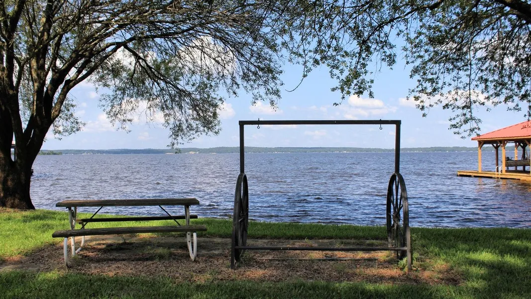Calling all fishing people!! Beautiful level double waterfront lot on Lake Palestine in East Texas! With over 100 feet of shoreline facing east over main body of lake, you will enjoy INCREDIBLE sunrises and moonrises, as well as cooler afternoons in summer. Build the waterfront home of your dreams on this approximately .3 acre tree shaded lot with partial chain link fence, storage building for your lake toys, and boathouse with jet skis lift and two boat lifts. There has been a house on the lot, so water and electricity are already installed. Neighborhood amenities include boat launch and fishing pier plus community center and playground. Consider the possibilities and take a look at the lot where lake living could begin for you!