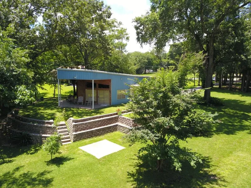 This is definitely a one of kind Lake Palestine waterfront property for sale. An ideal lake house, the home is a metal building with an oversized two car garage. The minute you open the door into the family room this home has that instantly feel good feeling. This home has a lot of natural light with large windows in family room overlooking the tree-shaded yard and beautiful lake. The family room & dining room combination overlooks the large kitchen & breakfast bar. The family room has tall ceilings & wood burning fireplace & to the left of the fireplace are glass doors that lead to the large covered patio. The kitchen has many cabinets for storage & plenty of counter top space. There is a nice window over the kitchen sink & you will love the instant hot water on demand. Off the kitchen is a privately located utility room. The home has beautiful wood throughout the home & the master bedroom has a tongue-and-groove ceiling. The master bath is a nice size with dressing area. The new shower is right around the corner with a makeup vanity with sconce lamps on each side. This antique vanity will remain with the home. The porch overlooking the lake will be a nice place for morning quite times & plenty of room for cookouts. The yard is beautifully landscaped with lots of majestic trees. There is also a storage building on the property that used to be a wood working shop or man cave. This is a multi purpose building. This could also be separate living quarters with a large porch overhang just like on the main house. Wait until you see the boathouse! It has two stalls with a large sun deck up top. This boathouse is constructed of galvanized pipe & all pipe in water has been coated. This property is located on a wide & deep channel providing no need for the expensive bulkhead & upkeep. There is a pump in the lake to water the yard. There is also an extra reconditioned pump in the garage for a backup. No HOA dues, No Restrictions other than no mobile homes.