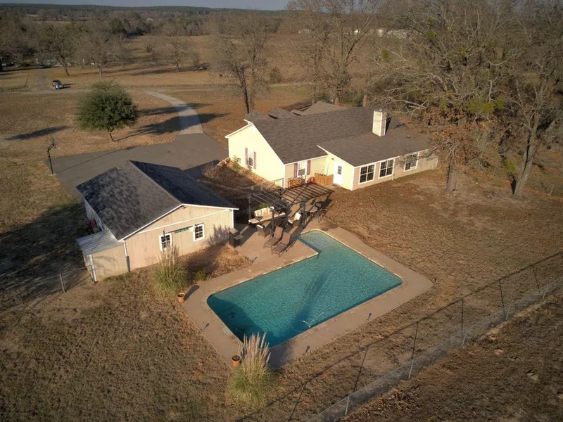 Beautiful country home on 2 acres with detached garage and pool. Home sits up on a hill with nice views and plenty of privacy. The focal point of the family room is the beautiful wood burning fireplace with large hearth. The family area has plenty of room for family and guests. There is a dining area off the family room in the front of home with nice views from the front window. The kitchen has a breakfast nook and granite breakfast bar. Plenty of room for seating family for dinner. The master bedroom is adjoined by a nice master bath with walk in shower and double vanities. There are two bedrooms that share a bath and the fourth bedroom has its own private bath. There is a game room off the breakfast room or a mutli-purpose room. Enjoy the 8' deep salt water pool......lots of time for relaxing and enjoying the privacy and views. There is a detached garage with room to have work benches for working on the big boy toys. There is even room to play basketball on the drive in front of garage. Just a really sweet place to call home and is ready for a new family to make their memories here. Welcome to Frankston!!