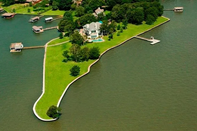 THE POINT AT PEBBLE BEACH. Expansive windows and soaring open spaces capitalize on the breathtaking views of this extraordinary waterfront estate, positioned on a magnificent 2.29+/- acre open water peninsula. Dramatic design elements combine with sophisticated materials to bring you a contemporary home rich in style but designed equally for lake living. Features include white limestone exterior, floor to ceiling windows, private home theater, spacious master with breathtaking open water views, massive gym/exercise room, pool with spa, covered porch with slate flooring, outdoor fireplace, and double boathouse with additional power watercraft lifts. The beauty of the home is only matched by the property's magnificent site offering commanding waterfront views in almost every direction. Experience a lake lifestyle at an extraordinary level. Inquiry Code: 63601