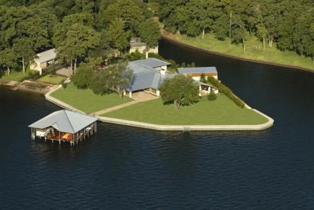 PURE PARADISE. One cannot describe this home in the traditional sense as much of the living takes place outside on the huge private point this home rests on. This private and secluded setting encompasses approximately .40 acres with more than 449 feet of protected shoreline. Amenities include end of cul-de-sac, private gated entrance, Austin stone exterior, metal roofing, cedar accents, granite counters, huge covered gathering area, four bedrooms, four and one-half baths, separate waterside guest suite, outdoor kitchen, sandy beach, and views over shimmering open water from almost every room in this remarkable lake home. Superb private boating facility includes 2 full sized boat slips, four power watercraft lifts, expansive deck area, and metal roof. A perfect one-of-a-kind primary or vacation residence with an exquisite location to enjoy a relaxed and fabulous lake lifestyle. Pure paradise!!! Inquiry Code: 63890