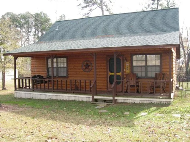 Log Cabin home on 2 lots within walking distance of Lake Palestine. Wait until you see this unique home! You are welcomed by a large front porch and porch swing. The kitchen and family room are one large open area. There are two bedrooms downstairs along with a full bath and utility closet. Upstairs is a loft used as the third bedroom and bath. This area would also make a great office space. With the Aspen ceilings and the display areas, this is a fun home to decorate. Home is all electric and all appliances remain. If you enjoy the lake, there is a private boat launch for home owners only. Some furniture is negotiable. Don't miss the chance to find a charming log cabin in a great location and homes-only area.