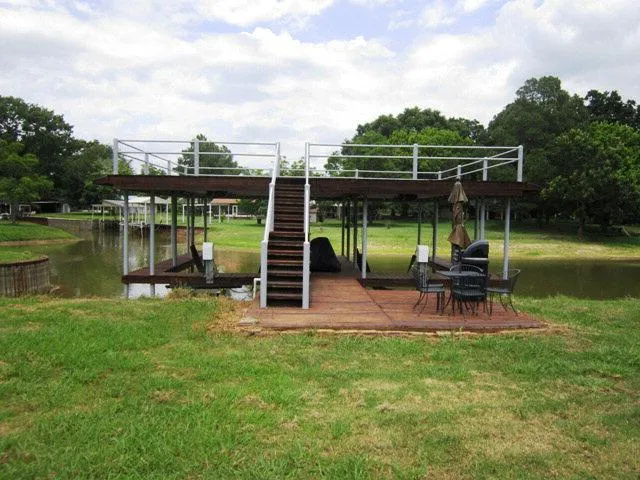 Beautiful .48 acre waterfront lot on wide channel that was dredged in 2011. Fantastic, oversized boathouse with party deck, 2 slip boathouse, 2 jet ski lifts, and storage. Seller says 8' under boathouse when lake is full. Sprinkler system off lake. Mature oak trees. A great buildable lot with a spectacular view. Inquiry Code: 75331