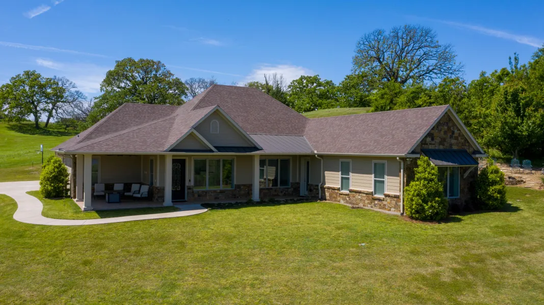 This wonderful home sits on a hill side with a breathtaking view of Valley View Lake. Located in the coveted Water Edge Ranch community, this home has no equal. The house not only overlooks the private 350 acre lake, but also a wildlife reserve area with deer, zebra, and elk. This home is an energy-efficient ICF build with gorgeous granite countertops, and an incredible view from both the living room and the primary bedroom, this house is ready to be called your home. Thanks to being an energy-efficient ICF build, you can save bundles on utilities! The outdoor firepit gives you a beautiful spot to sit in the evenings to enjoy your view. Finding a home like this is a rare and prized opportunity, so act fast and do not miss out!