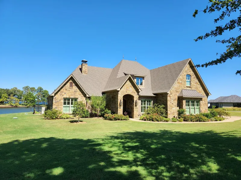 Experience lake living in casual elegance at this custom waterfront home on Lake Palestine! Built by Trent Williams & completed in 2019, this 4 bedroom, 3.5 bath home with a 3 car garage exemplifies the details of quality construction that most buyers strive to find. Located in gated Brown's Landing, with 3864 sq. ft., extensive trim & built-in cabinetry grace the interior of this thoughtfully planned home. An entry hall welcomes you to the living area with gas stacked stone WBFP flanked by lighted custom cabinetry plus wet bar with ice machine & wine refrigerator. Living & dining areas provide beautiful views through a wall of windows lakeside. Kitchen has an abundance of cabinetry with quartz countertops, designer tile backsplash, gas cooktop, double ovens, & pull out drawers behind lower cabinet doors & in island. Hickory floors throughout downstairs living/dining areas, kitchen, offi...