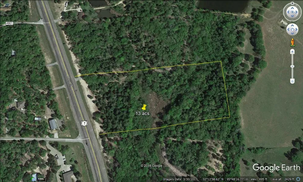 13+/- Wooded acres with live spring fed creek running through the property. 518' of road frontage on Loop 7. Electric and water available. Fenced front and back