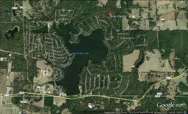 Located in the piney woods of E. Texas in Callender Lake subdivision. Amenities include community center, boat storage area, launch ramp, playground, covered fishing pier, swim beach/park with picnic tables, fishing park with horse shoe pit, barbecue pit and benches. Callender Lake is fed by natural springs so it is a constant level lake. Lake is stocked each year with bass, catfish and crappie so fishing is always good. Come make Callender Lake your home!