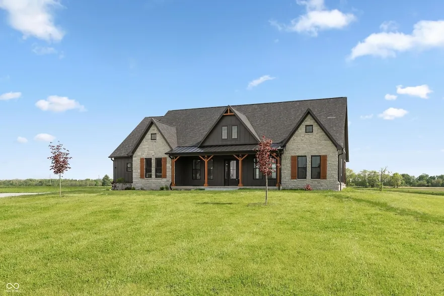 This stunning country home, built in 2024, is the perfect canvas for you to add your personal touch! Nestled on 13 acres, it offers space you've been dreaming of, with an open, split floor plan that maximizes both comfort and convenience. Upon entering, you'll immediately notice the gleaming wood laminate floors that flow throughout the home. The spacious kitchen is a chef's dream, featuring granite countertops, stainless steel appliances, a center island, a farmhouse sink with a built-in drying rack, and a walk-in pantry just steps away. The kitchen seamlessly opens to the living room, dining area, and a versatile office space that could easily be customized to fit your needs. The living room is bathed in natural light, with large windows that offer breathtaking views of the surrounding countryside. Step outside through the door to the completely covered patio-perfect for relaxing or entertaining while taking in the peaceful rural setting. The spacious primary bedroom includes a generous walk-in closet and a private bath featuring a huge tiled walk-in shower and double sinks. The laundry room is equipped with built-in cabinets for added storage. Bedrooms 2 and 3 are ready to be finished with your choice of carpet, offering the opportunity to create the perfect space for family or guests. The full hall bath, with a tub/shower combo, is also ready for your personal design preferences. An 800 square foot unfinished bonus room provides endless possibilities for expansion-whether you envision a home gym, office, or extra living space. The two-car finished garage ensures ample storage and convenience. With two efficient heating systems, this home is designed for comfort year-round. The expansive 13-acre property offers boundless opportunities, whether you want to build a pole barn, start a hobby farm, or just enjoy the beauty and serenity of country living. Conveniently located near I-74, this property gives you the peace of the country with the convenience of easy acces