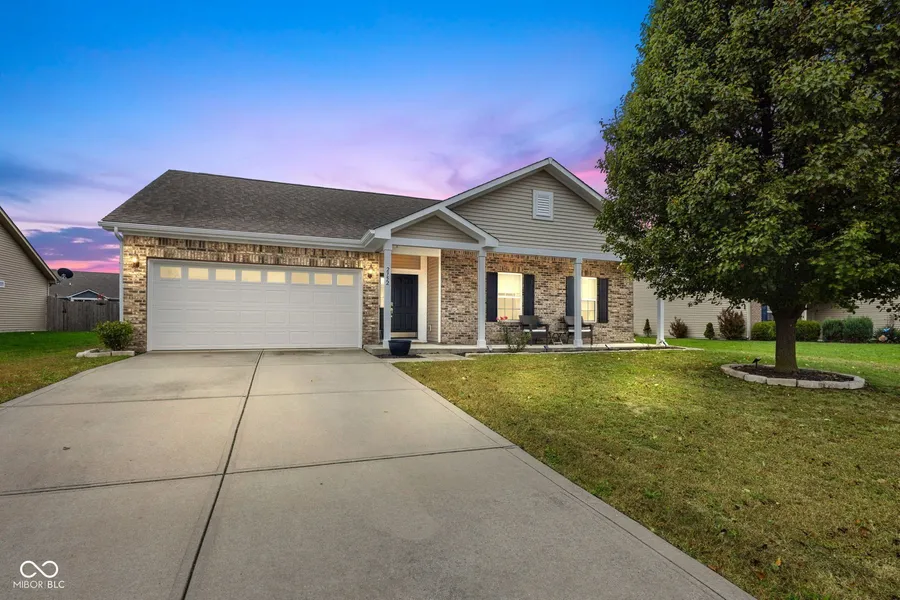 Move-in ready! *New carpet in family room & hallways, Newly painted exterior, front porch & columns, Newly painted inside garage with trim, insulated and finished, Water heater new in 2024. Dining room table & chairs included (New 2024). Washer & dryer Included (new 2024). Don't miss this one! Nestled at 2752 Arklow WAY, BROWNSBURG, IN, at Northfield at Wynne Farms, this single-family residence in Hendricks County presents a 3 bedroom, 2 bath ranch home. The kitchen is thoughtfully designed with 42" upper Maple cabinets, making it a wonderful place to prepare meals and enjoy casual dining with open dinette, kitchen & family room separating with 1/2 wall with wood top. The primary bedroom provides a large retreat with its own ensuite bathroom & walk-in closet. 2nd full bath is located by the other 2 bedrooms separate from the Master Bedroom. 2-car finished garage with water softener with garage newly Finished & painted. Family room has a wood fireplace for relaxing evenings! 9' ceilings throughout. Large covered front porch for with back patio that has a large fenced in yard with black aluminum fence with water view. The property also offers the practical features of a Walk-in laundry; all designed to enhance everyday living. Microwave above stove (New in 2024), All lower cabinets have child protective locks throughout home. Built in 2013, Home has 1522 sq ft of living space with back yard water view, all designed to project a comfortable atmosphere. Community benefits include a Community Pool, Playground and Basketball Court with access to B&O Trails. A wonderful opportunity to enjoy comfortable, single-story living. *Seller offering up to $6,000 towards closing costs. Schedule your tour today!