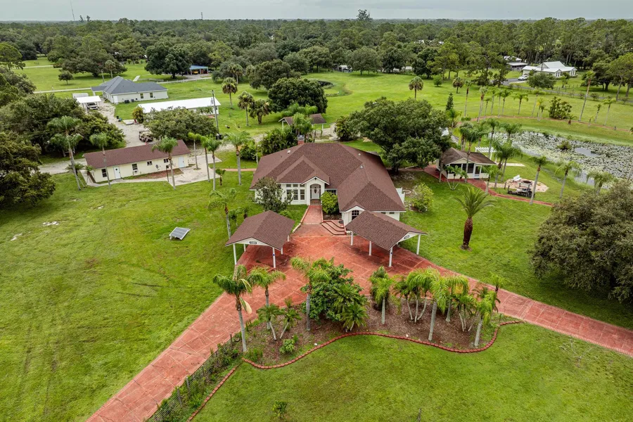 Four-bedroom 3 bath home with 2,757 square feet under air on 4.63+/- acres! In addition, there is a screened outdoor kitchen / barbeque area, detached office / or gym, two car detached garage / workshop, a 1-bedroom efficiency apartment, gazebo, nursery / shade house, boat house or RV covered storage, a pond and a park like yard. The zoning also allows for horses and livestock. The home features cathedral ceiling, a huge great room with a gas fireplace, formal living room or den and dining room + breakfast nook, two master suites, a huge game-room / billiard room, large screened & tiled lanai with hot-tub, new roof and much more + its priced $27,913 LESS THAN THE 2024 COUNTY TAX ASSESSMENT. (Possible seller financing with $200,000 down)