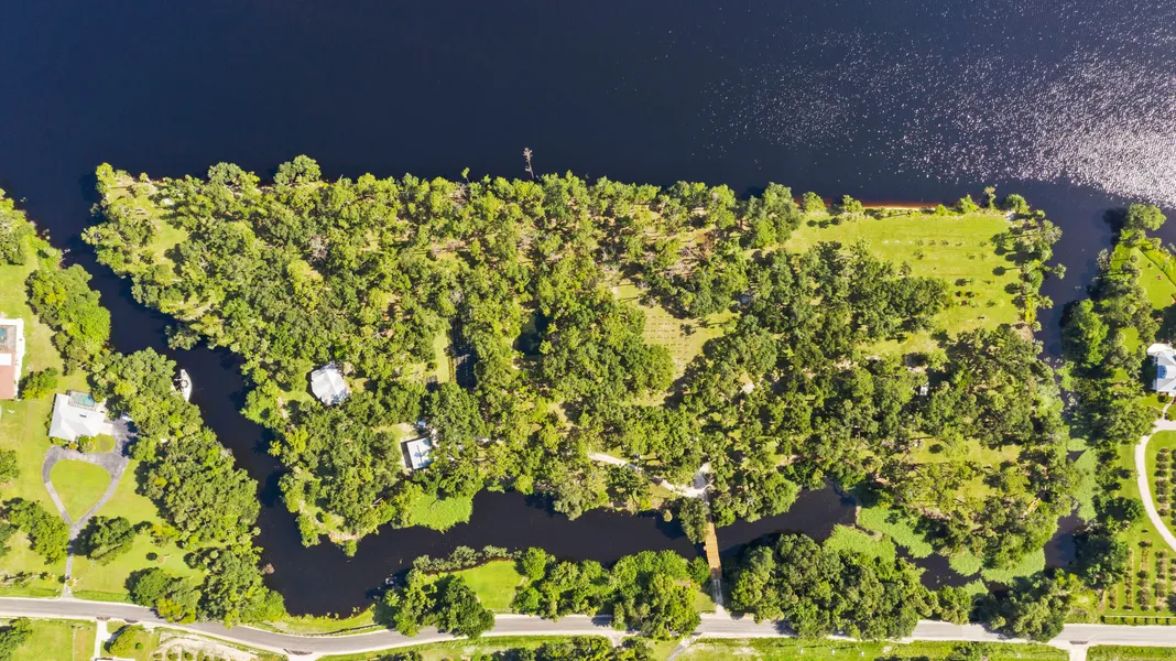 OWN YOUR OWN ISLAND...A RARE DISCOVERY... LOCATED IN TRANQUIL FORT DENAUD, FLORIDA (SW) ON THE INTRACOASTAL CALOOSAHATCHEE RIVER, LIES A HIDDEN GEM. A 14 +/- AC ISLAND THAT DEFIES "STUNNING!". SECLUDED, YET ONLY 20 +/- MILES TO DOWNTOWN FT MYERS & I-75. As you cross over your private bridge, you will find yourself surrounded with 360 degrees of unmatched water views from every angle. You will also see rows and rows of commercially grown pineapples and dragon fruit (red, white, yellow and pink varieties) plus bananas, avocados, mangoes and papaya. Careful of the rock terraced pond stocked with tilapia & bass fish. Commercial use? Now you're on the right track! Live where you work & work where you love to live - it's not a dream! Current zoning is AG-2. County will allow 2 residences here. Existing now is an 800 SF frame with metal roof guest house/retreat. 2 BR, 1 BA, great room, kitchen,...