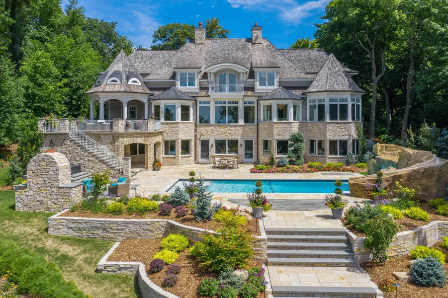 Spectacular and sophisticated Woodland estate with long west facing lake views and incredible living spaces. Private setting with gorgeous grounds and gardens and resort like amenities throughout the home. Main floor living for owners with exquisite owners suite