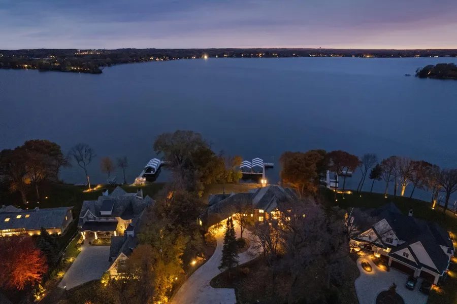 Impeccably updated estate home with breath-taking views of Carman Bay. 180 feet of hard sand lakeshore. Nearly every interior surface has been touched, including kitchen remodel, bathroom refinishing, paint/enameling, carpeting and more. Updates done by Charles Cudd Co. and Denali Custom Homes. Main level features unprecedented lake views, floor-to-ceiling windows, formal and informal living spaces, and private master wing. Upper level includes two bedrooms with ensuite baths and walk-in closets. Expansive walkout lower level with 3 additional bedrooms, wet bar, family room, den and amusement/exercise room. Separate storage space could also house cars, jet skis or outdoor equipment. Private 1 acre lot at end of private drive. Conveniently located close to Navarre and downtown Excelsior.