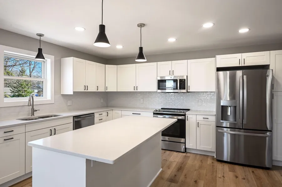 Location, Location, Location. Shows like brand new model home. Enjoy Lake Minnetonka- 1 block to SurfSide park on Lake Minnetonka with sandy beach, picnic tables, park, playground and dock. This home has been completely remodeled inside and outside. Beautiful luxury flooring and new carpet. Main floor and lower level bathrooms totally brand new. Fabulous gourmet kitchen with new center island, new appliances, new cabinets and counter tops. Cozy wood burning fireplace in the living room. Finished walkout lower level offers spacious family room with wood burning fireplace, big 4th bathroom, gorgeous bath with shower. Large concrete patio. Extra deep 2 car garage. Quick closing available.