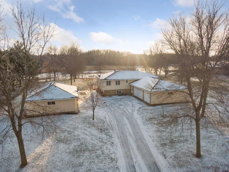 Welcome to your private lakeview home situated on a generous 2.74 acre lot, where tranquility meets the shores of Ox Yoke Lake along with the beautiful sunsets. As you step inside this 3,500 square foot home you will discover four generously sized bedrooms and three well-appointed bathrooms. The homes design maximizes both comfort and functionality, with an impressive four-season porch featuring panoramic lake views that bring the outside beauty indoors year-round. The large gourmet kitchen along with a butler's pantry is a chef's delight, equipped with everything one may need to create culinary masterpieces. The cozy walk-out lower level includes a custom bathroom with jetted tub and shower. Throughout the home, you'll find expansive rooms that provide plenty of space for both family gatherings and private retreats. The property's practical amenities include an impressive six garage stalls (three car attached/heated), perfect for a man cave, car enthusiasts or those needing extra storage space. Outdoor enthusiasts will appreciate the close proximity to the scenic Luce Line Trail, offering miles of recreational opportunities. Enjoy snowmobiling, paddle boarding, and kayaking right from your back yard. The additional paver parking area provides ample space for recreational vehicles or guests parking. This property creates a private sanctuary while maintaining convenient access to nearby amenities. Whether you're enjoying morning coffee in the four-season porch, hosting lakeside gatherings by your firepit, or enjoying water activities, this exceptional property offers the perfect blend of privacy and natural beauty in a serene setting. There are numerous golf courses nearby, and easy access to several state highways and the Twin Cities. Come enjoy country living at its finest!