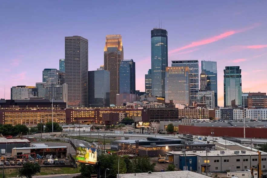 IMS Lofts...everything a loft should be! Originally built as the Northwestern Knitting Company/Munsingwear textile factory, this Classic Revival building was perfectly suited to convert from a previous use to residential lofts. This top floor 1 bedroom plus a large den (easily converted to a true 2nd bedroom), 2 bath unit features one of only 4 gas fireplaces in the project, freshly refinished original factory maple hardwood floors, high ceilings, exposed brick, a private deck, 2 garage parking spaces and a large storage locker. The condo has also been freshly painted throughout. The unit faces north and is filled with natural light throughout the day and is located on an upper floor providing panoramic city views and privacy (no neighboring building blocking views). This is one of the largest and most desirable floor plans in The Lofts at International Market Square. Please note all of the '04 and '07 units in IMS are the same floor plan and were originally marketed as 2 bedroom, 2 bath units- buyers were given the option to formally separate the 2nd bedroom space with the doors and glass used on the primary bedroom, or leave the space open to create a larger loft feel. The unit currently has the 2nd bedroom open to the great room. The original glass and door vendor is able to add the matching doors and glass as on the primary bedroom if that is the buyer's preference.