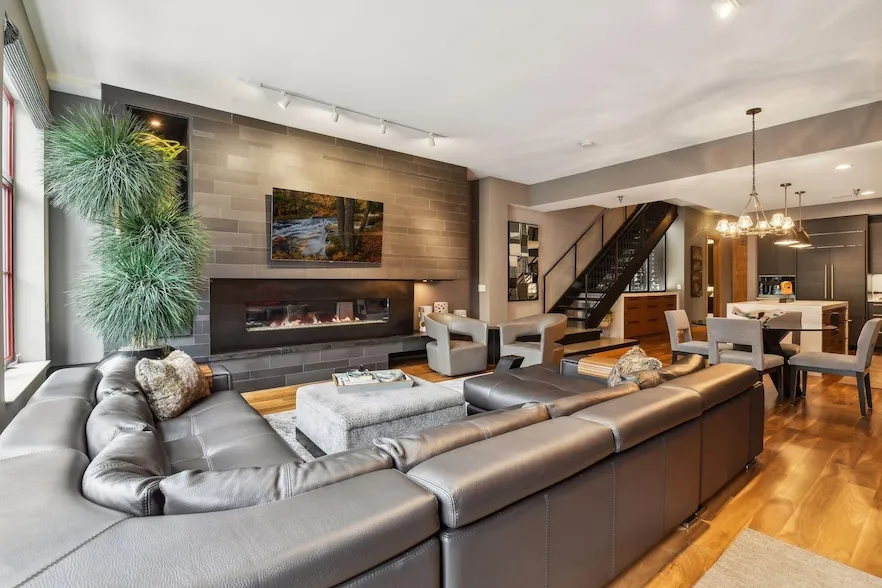 Discover a luxurious urban sanctuary in the heart of the Mill District: an exquisitely remodeled two-story condo at Stone Arch Lofts. This architectural masterpiece offers an open-plan design, providing an idyllic setting for your sophisticated downtown lifestyle. Step into the grand living room, where oversized windows flood the space with natural light, highlighting an architecturally designed gas fireplace and an elegant media wall. The seamless transition to the open dining area creates a vast, inviting space adorned with walnut hardwood floors throughout the main level. The chef s kitchen is a culinary dream, featuring top-of-the-line Wolf and Sub-Zero appliances, a Miele built-in coffee maker, custom cabinetry, and stunning Cambria surfaces. A temperature-controlled wine cellar is artfully integrated under the staircase, offering additional custom cabinetry for all your storage ne...
