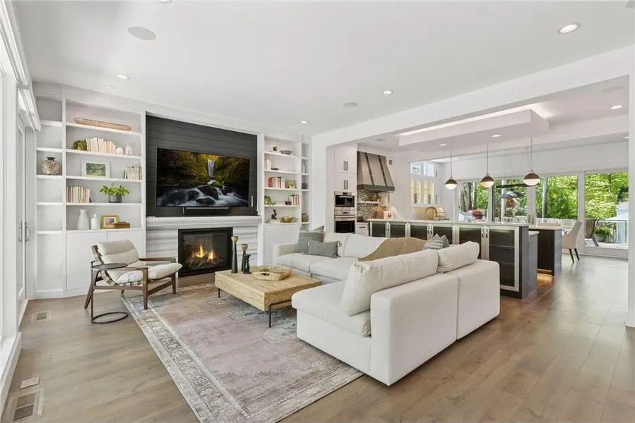 This incredible four bedroom/four bath contemporary home overlooking Beard's Plaisance & Lake Harriet is a perfect condo alternative, with an ELEVATOR providing access to every floor. Come live in the heart of Linden Hills, just a short walk to dozens of shops and restaurants. Huge floor-to-ceiling windows throughout create a luxurious treehouse feeling, and sunrises over the lake from the primary suite and main floor living areas are incredible all year round. This award-winning home has been exquisitely remodeled from top to bottom, inside and out, with every detail considered. Chef's kitchen includes huge quartz countertops, top of the line appliances, custom hood vent, coffee bar, informal eating area, and more. Main floor boasts open concept living/kitchen area with fireplace, separate sunroom with fireplace, private office, powder room, and formal dining area, currently used as add...