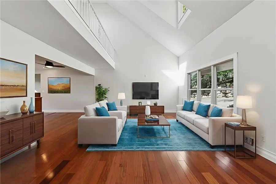 First time available in over 40 years! This impressive home blends warmth, character, and versatility with main level living, as well as serene tree-top and nature views. The main level showcases a dramatic vaulted ceiling, cherry hardwood floors, and an updated kitchen with rich cherry cabinetry, stainless appliances and a picture window framing the scenic backdrop. Generous gathering spaces include both living and family rooms, a cozy wood-burning fireplace, and access to an expansive deck-perfect for entertaining or quiet relaxation. Three bedrooms, including one of two primary suites, complete the main level. Upstairs, discover a spacious second primary suite, 5th bedroom, flex room, sitting area, and loft. The unfinished walkout lower level, with 10-foot ceilings, fireplace, and bath rough-in, provides an excellent opportunity to add value and expand your living space. Nestled on a ...