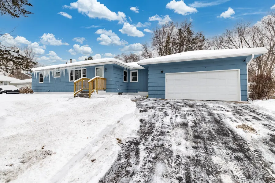 Rambler with 5BR floor plan, 2-car attached garage, 3-season porch, hardwood floors, and finished basement. Property offers ample front and backyard space and deep driveway.