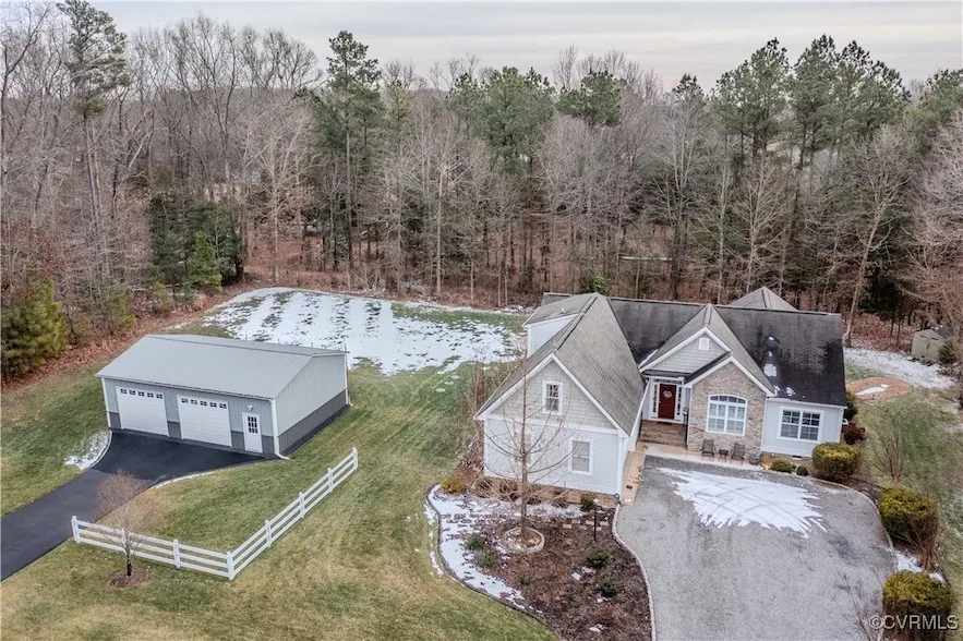 You will not find another home as well kept as this one. This stunning stone and vinyl home offers 2,186 square feet, a 2-car attached garage, AND 2-car 33x25 detached, 4 bedrooms and 3 "full" baths, 12-foot ceilings in living room, kitchen and dining room, hardwood floors, a water softener system and irrigation system, paved driveway, and a 13x14 rear patio. The main level features the formal living room or office complete with stately columns, the open cozy family room, a formal dining room, the kitchen with granite counters and plenty of cabinet space, and a lovely breakfast nook, as well as the spacious primary bedroom with a custom closet and a beautiful brand new ensuite bathroom, along with the 2nd and 3rd bedrooms and another full bath. The second floor offers the huge 4th bedroom, also with its own full bath! All 3 bathrooms have been renovated and look like they have never been used. A few other features are gutter guards, the crawl space is encapsulated with a dehumidifier, a 14x13 patio and a spacious fenced raised bed garden area. The septic was just pumped and inspected along with a clean termite inspection. This home sits on a 1 acre lot and is absolutely gorgeous and offers the feel of rural living with the convenience of being close to surrounding cities and entertainment venues. East of I295 going toward Charles City. Take a look!