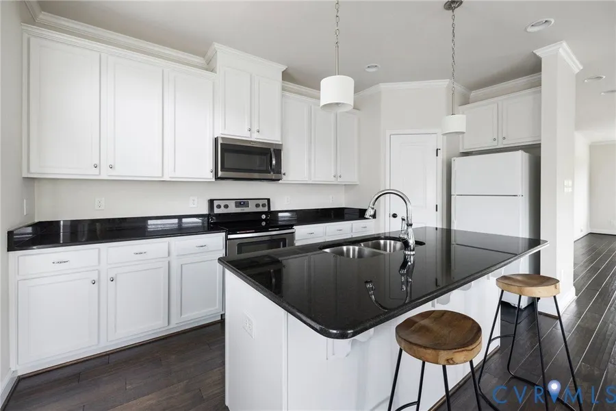 Welcome to Bedford Falls @Hickory Grove - A 'Move-in' condition 3 Bedroom, 3.5 Bathroom Townhome! This home has 2074 finished square feet on three levels , plus a 1-car garage! 1st Level includes welcoming foyer, large hall closet, access to 1-car garage and 1st floor guest or primary suite with full bath, with access to rear patio and fenced rear yard. The 2nd level offers open layout with Family Room, Dining Room and Kitchen with access to rear deck. The 3rd level delivers 2nd Primary Suite with large walk-in closet, primary bath with glass shower with built-in bench & double vanity; 3rd Bedroom with ensuite full bath and double closet; laundry room with mud sink and front loading washer & dryer; and large hall linen closet. Hardwood Floors on 1st and 2nd levels and 3rd level Hall, with Carpet in 3rd Level Bedrooms, Tile in Laundry and Bathrooms. 12' X 20' rear deck, Pull Down Attic; dual-fueled 2 zoned HVAC system. NEW Refrigerator! Yard is maintained by the association, irrigation system in place as well. Ideally located near Interstate 64 & 295 on the Nuckols Road corridor convenient to shopping, restaurants and great local schools!