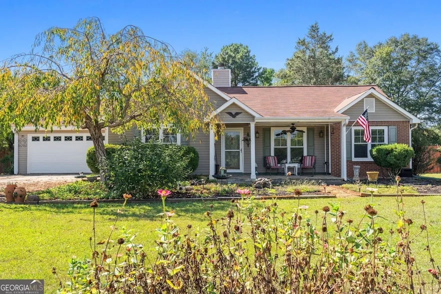 Welcome to your dream home in Locust Grove all on one level! Remarkable, move-in ready ranch home on over 1 acre of land, offering privacy and room for outdoor activities. Less than 1 mile from the elementary school, making it convenient for families with young children. Split bedroom plan provides privacy within the home, and hardwood floors throughout the main floor adds a touch of elegance. All appliances will remain. Upgrades include a Roof that is 10 yrs old, HW tank 8 yrs., and new windows throughout adding energy efficiency. Updates include: Kitchen and BOTH baths, along with the enclosed sunroom. Family room has an enclosed dedicated desk area for that "work at home" space and connects to a sunroom with heating and AC, offering extra living space year-round. Backyard has privacy fencing and chicken coop/dog run, for animal lovers with farmland in back. An above-ground pool with a new liner, yet to be installed, offers summertime fun. Small community, home near the cul-de-sac - making it a safe and friendly environment. This home offers a balance of rural charm and modern convenience with plenty of space for a growing family and their pets.