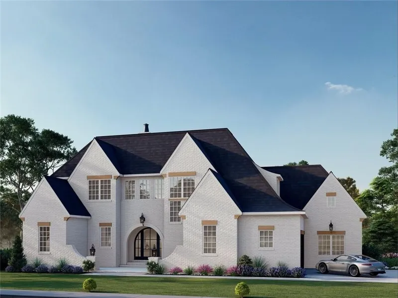 New Modern European-style luxury 4-sided brick home w/ cedar accents! Features 2 spacious master suites w/private ensuite. Soaring 10-ft ceilings, arched entryways & large windows create a light-filled, open feel. Gourmet kitchen w/ walk-in pantry, custom cabinets, and premium finishes. Dedicated office perfect for working from home. Sliding doors that opens to your covered deck. 2-car side-entry garage adds curb appeal. Unfinished daylight basement w/ separate entrance, windows throughout & stubbed for 2 baths—ideal for future in-law suite. A rare blend of elegance, space & potential! This home has over 6000 sq ft total under roof. Completion date is November 2025.