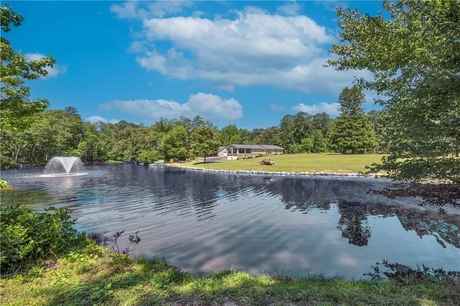 Properties like this don’t come along often! This is a rare opportunity to own a stunning 5.59-acre private estate with professional landscaping, a spring-fed pond with a continuous inflow and floating fountain, providing gentle aeration that keeps the water fresh and the fish thriving. The home offers 2,698 sq ft of finished living space, with hardwood floors throughout the main level, an inviting foyer, and an open living area anchored by a stack stone wood-burning fireplace. The spacious dining room easily seats 12, and the chef’s kitchen features custom cabinetry, granite countertops, stainless steel appliances, pantry, and abundant storage. The main level includes three bedrooms and two full bathrooms, including a private primary suite with an updated bath, a guest bedroom, and a third bedroom ideal for a home office. A fully updated secondary bathroom and a laundry room with built-in cabinetry complete this floor. Step outside to the expansive, covered deck overlooking the pond, perfect for entertaining, dining, or simply enjoying the natural surroundings. The finished terrace level, with its own entrance, offers another bedroom, a full bath, a large living area, space for an office or gym, and a second laundry area. Tile flooring runs throughout the bathrooms, terrace level, and deck. Heating and cooling for the lower level is provided by a separate ductless mini-split system. Additional property features include a two-car attached garage, a massive 40’ x 50’ detached garage/workshop, two large lighted shipping containers, RV hookup, and a secure storage shed. The property is on private septic and has two water heaters. Enjoy fishing, relaxing by the water, or exploring the nearby state park, all while living just a short drive from conveniences. Whether as a full-time residence or a weekend retreat, this home offers the best of both privacy and accessibility. This is a must-see! Don’t miss out! Showings are by appointment only; please do not enter the property without a scheduled viewing.