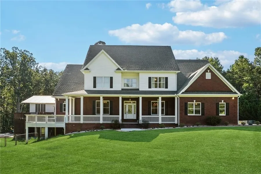 Welcome to your charming estate home set on five private acres—perfect for family living and entertaining. Inside, you’ll find soaring ceilings, spacious rooms, elegant arches, and beautifully contoured walls. The home opens with a formal dining room and living room, creating a warm and inviting entry. At the heart of the home is a large, eat-in kitchen featuring an island, double ovens, 5 burner gas stove, walk-in pantry, and open sight-lines to two expansive family rooms on either side—an ideal setup for gatherings. The primary suite encompasses the entire left wing of the home, complete with access to an upper deck overlooking the pool, a spa-like bathroom with separate shower and soaking tub, and a generous walk-in closet. Upstairs, you’ll find three oversized bedrooms—one with an en suite bath and two that share a full bathroom—each with large closets. A spacious loft provides a versatile play or lounge area, along with a dedicated room that can serve as a homeschool space, office, or creative studio. The lower level is designed for versatility, offering a full in-law suite with two bedrooms, a bathroom, kitchen, and family room. Additional highlights include a dance studio with a floating floor, a home theater, and a pool bathroom with its own laundry area. Outdoor living is just as impressive. A four-season porch opens to a large wrap-around deck leading to the built-in salt water heated pool below. On the left side of the home, a separate upper-deck party space has hosted everything from birthday celebrations to weddings. The backyard is complete with a treehouse—wired with electricity—for endless fun.