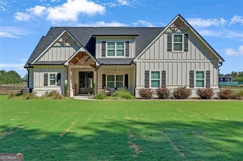 Price Improvement!! Motivated Seller!! Stunning Modern Farmhouse on Over 1 Acre with Premium Upgrades!! Welcome to this beautiful, custom-built 4-bedroom, 3-bath home situated on over an acre of serene, fenced property. Designed for both elegance and comfort, this home offers spacious living with a modern open-concept layout, ideal for everyday life and entertaining. Step inside to discover floor-to-ceiling windows that flood the space with natural light, enhancing the home's airy and inviting atmosphere. The living room features a cozy fireplace, perfect for chilly evenings, and flows seamlessly into the oversized breakfast area and fully loaded modern kitchen - complete with high-end appliances, ample slow close cabinetry, and a large island perfect for gathering. The primary suite is located on the main floor, boasting a luxurious ensuite bathroom and ample closet space. An additional bedroom is located on the main floor for a mother-in-law suite or company. Another full bath is on the main. Upstairs, you'll find 2 additional bedrooms, a large full bath and a versatile bonus room, ideal for a home office, gym, or media room. The home utilizes radiant barriers on all roofing surfaces along with blown insulation in the attic to provide exceptional energy efficiency year round. Enjoy outdoor living year-round on the covered back porch, overlooking the beautifully maintained, irrigated lawn and expansive backyard. The property is fully fenced, offering privacy and room to roam - whether for children, pets, or entertaining. Additional features include: 2-car garage Spacious driveway Gorgeous architectural details Quiet, scenic surroundings Conveniently located near modern amenities and close to the square! This is more than a house - it's the lifestyle upgrade you've been waiting for.